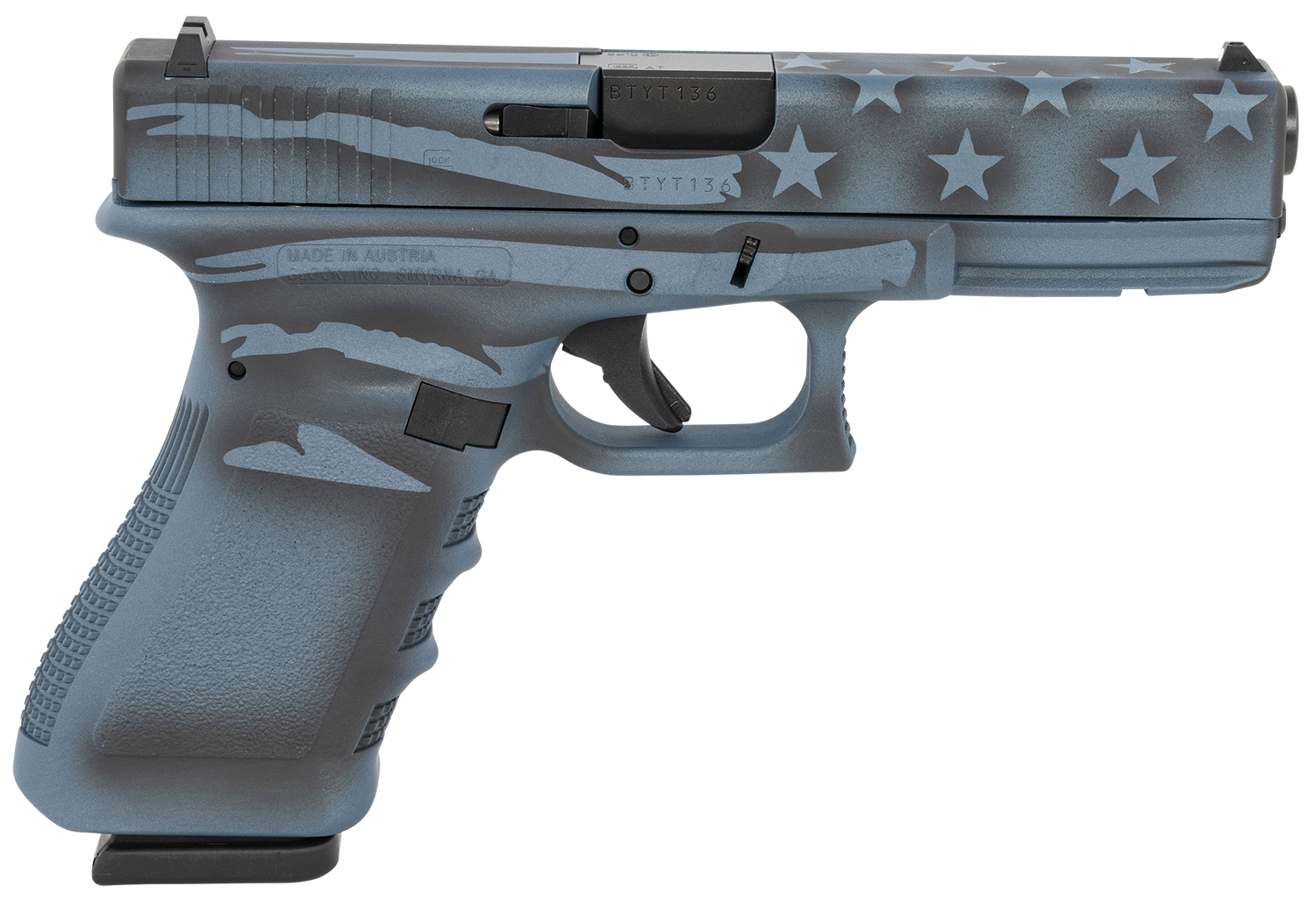 Glock PI1750204BTFLAG G17 Gen3 9mm Luger 4.49 Barrel 171 Blue Titanium Flag Cerakote Frame Slide Finger Grooved Rough Texture Grip Safe Action Trigger