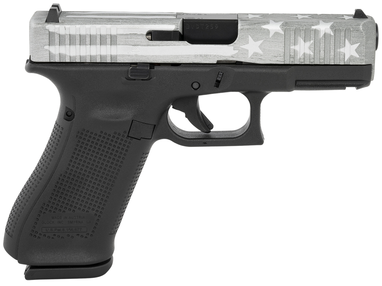 Glock PA455S204BWFS G45 Gen5 9mm Luger 4.02 171 Black Polymer Frame Battle Worn Flag Cerakote Steel Slide Rough Textured Interchangeable Backstraps Grip