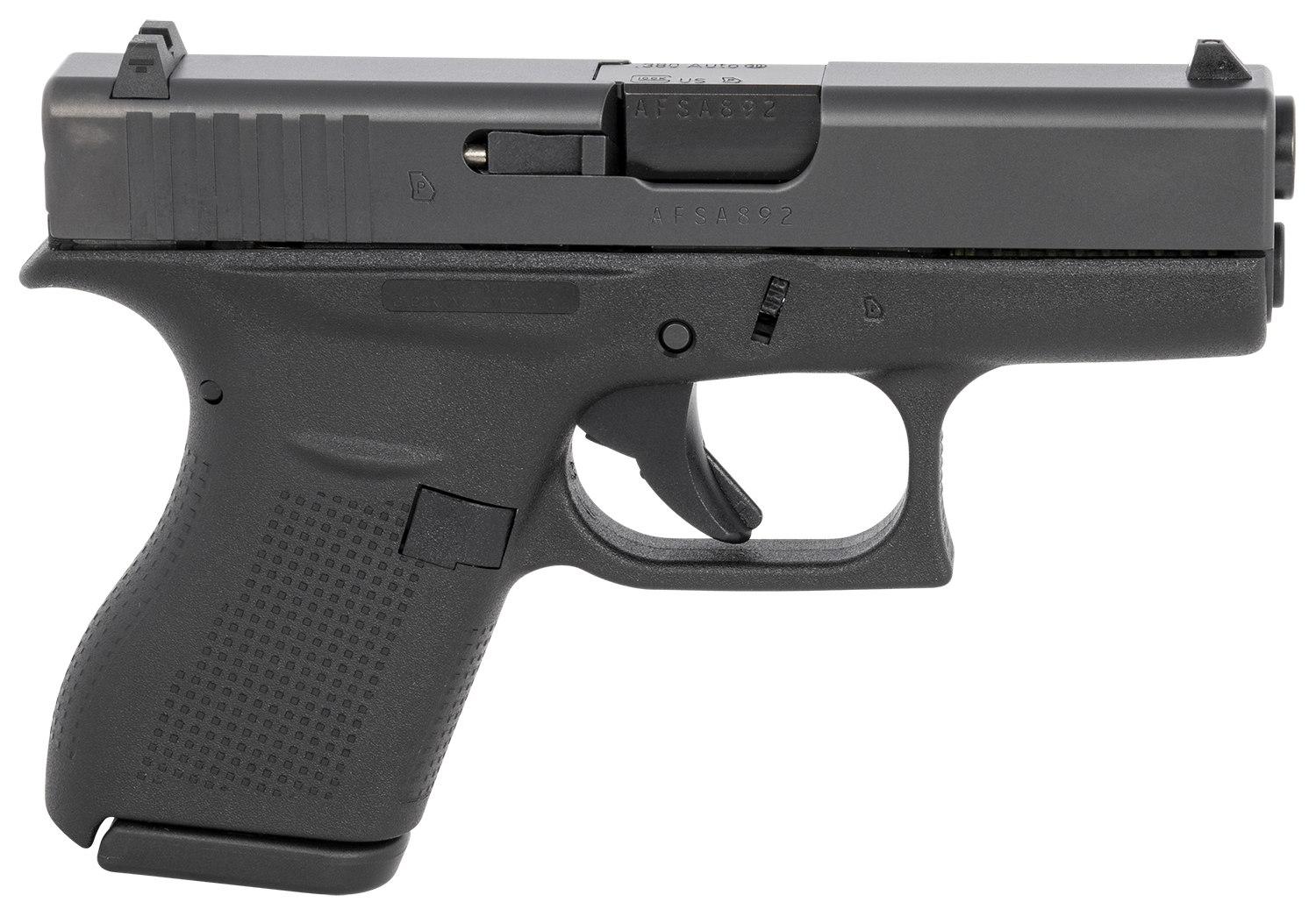 Glock G42US G42 Gen3 Subcompact 380 ACP 3.25 Barrel 61 Black Frame Slide Rough Textured Grip Safe Action Trigger US Made
