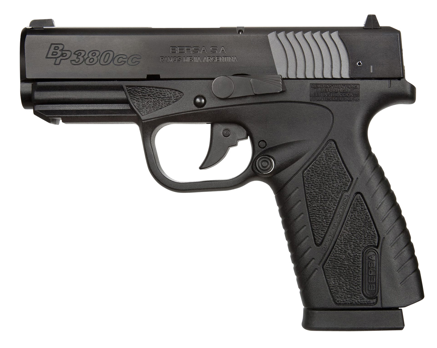 Bersa BP380MCC BPCC Concealed Carry 380 ACP Caliber with 3.30 Barrel 81 Capacity Matte Black Finish Polymer with Picatinny Rail Frame Serrated Steel Slide Polymer Grip